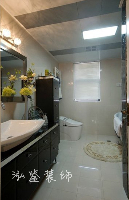 3、頂面——衛生間的頂部防潮,遮掩最重要。最好采用防水性能較好的PVC扣板或鋁扣板集成吊頂做吊頂,這種扣板可以安裝在龍骨上,還能起到遮掩管道的作用。還可以用玻璃和半透明板材等做吊頂。另外,也可用防水涂料刷頂。