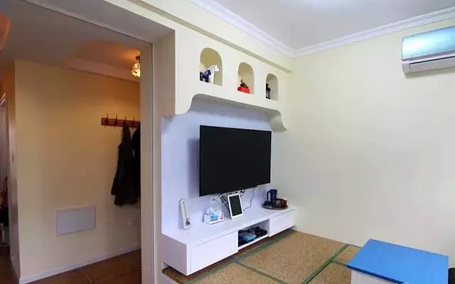 1.把原來的次臥做了榻榻米,并與廚房形成開放式空間,用推拉門分隔,平時可以作為休閑區域,有客人的時候,拉起推拉門就是一個小房間。